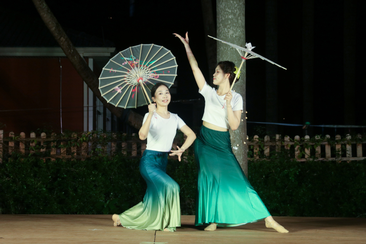 整场活动共呈现《巴郎》《月弯弯》《舞蹈串烧》《重返金曲年代》《伞》《飞云之下》等11个节目。艺术汇节目精彩纷呈,青春风采尽展。从《巴郎》里的热烈奔放,到《拆穿》中对真实的执着追寻,再到《月弯弯》里月色裹挟的青春叙事,一个个节目勾勒出青春的多元样貌通过一系列融合古典意蕴与现代审美的文艺节目,为广大师生呈现了一场浸润传统、洋溢青春的文化盛宴。