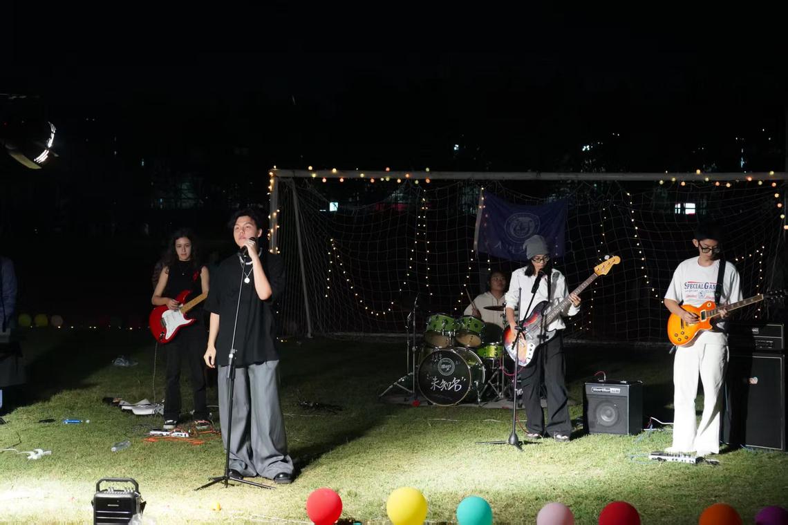 整场音乐节以“风吟草浪·乐动启航”“绿韵寻梦·音情染心”“音潮逐青·乐伴星光”为篇章,共呈现16个节目。未知名乐队以《Yellow》《海阔天空》《西湖》燃动现场氛围,戏剧团《悲剧大会》演绎青春情绪,舞蹈《寄明月》《Maniac》诠释传统与现代的律动碰撞;器乐团钢琴竹笛合奏《何以歌》流淌古韵,声乐团以《Try everything》《明知故问》等曲目唱响青春声浪,艺术团则以合唱《未来式》为草坪音乐节画上完美的句号。节目间隙的游戏环节更让学生们沉浸式融入这场草坪派对,多元表演交织出青春的鲜活底色。