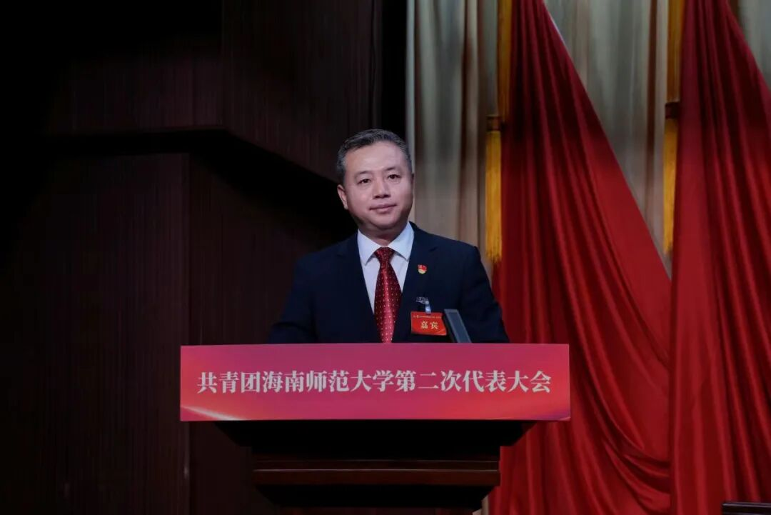 海南大学团委副书记杨智伟代表兄弟院校致辞。他表示,长期以来,海南大学团委与海南师范大学团委始终是守望相助的战友、携手共进的伙伴。这份在并肩奋斗中凝结的深厚情谊,既是海南高校共青团团结一心的生动缩影,更是未来两校持续服务自贸港建设的强大合力。