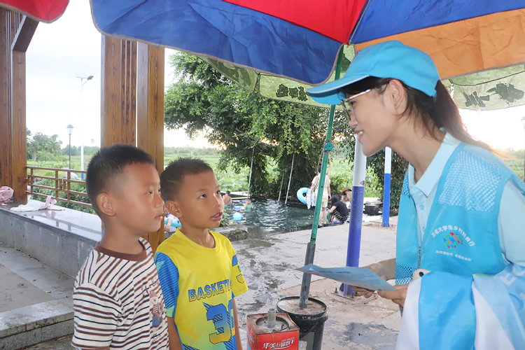 “教燃星火·育光启航”教育关爱综合服务团志愿者面向青少年开展暑期防溺水科普活动