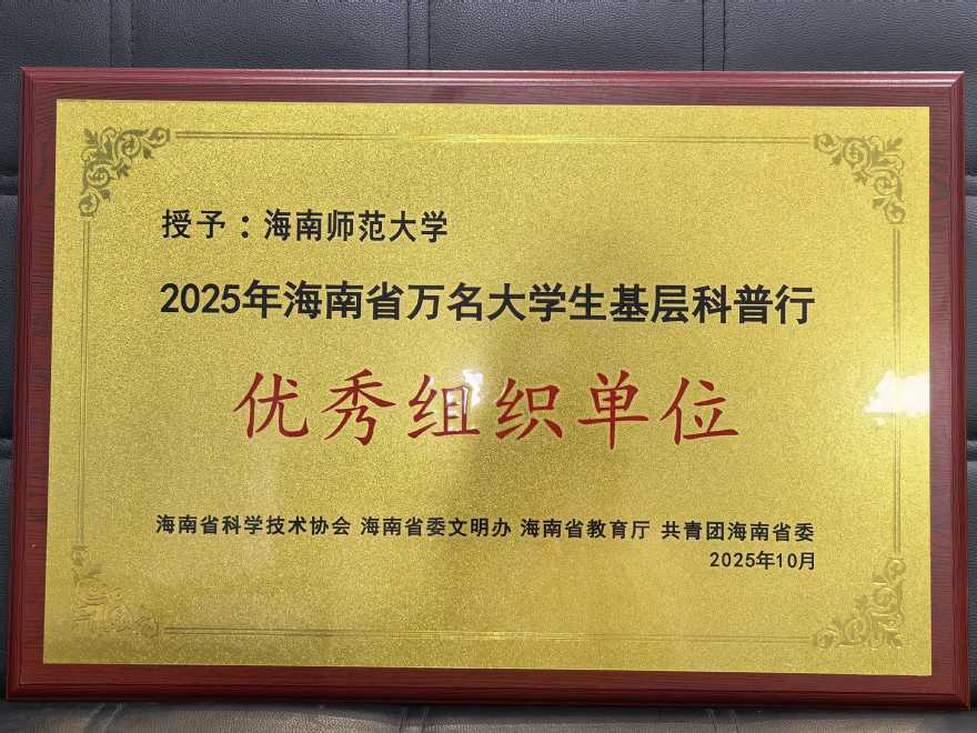 近日,海南省科学技术协会发布了《关于表扬2025年海南省万名大学生基层科普行活动优秀组织单位、优秀科技志愿团队及优秀科技志愿者的通报》,我校荣获多项荣誉。