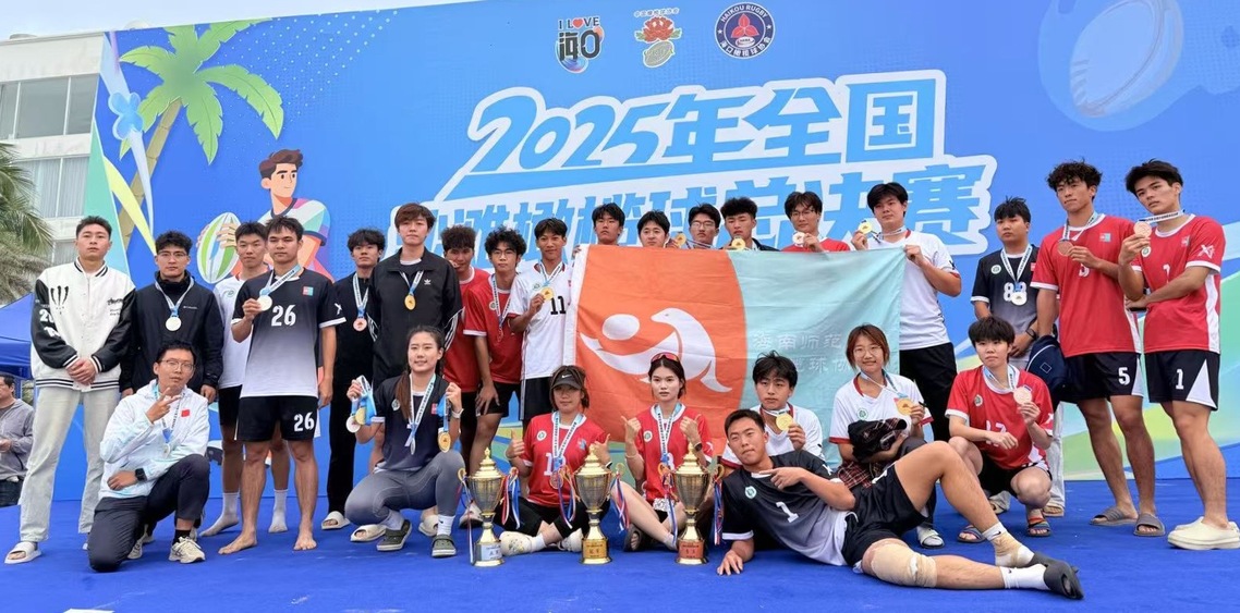 我校橄榄球协会派出飓风队、勇橄海师队与体院橄榄球小纵队参加比赛。经过激烈角逐,我校选手表现优异,飓风队夺得冠军,勇橄海师队获得亚军,体院橄榄球小纵队取得季军。在绵延四公里的沙滩赛场上,队员们展现出良好的体能、熟练的技术与密切的团队协作。比赛过程中,他们沉着应对、积极拼抢,凭借稳定的发挥与默契的配合,最终赢得优异成绩,充分体现了我校学生扎实的体育素养与团结向上的精神风貌。