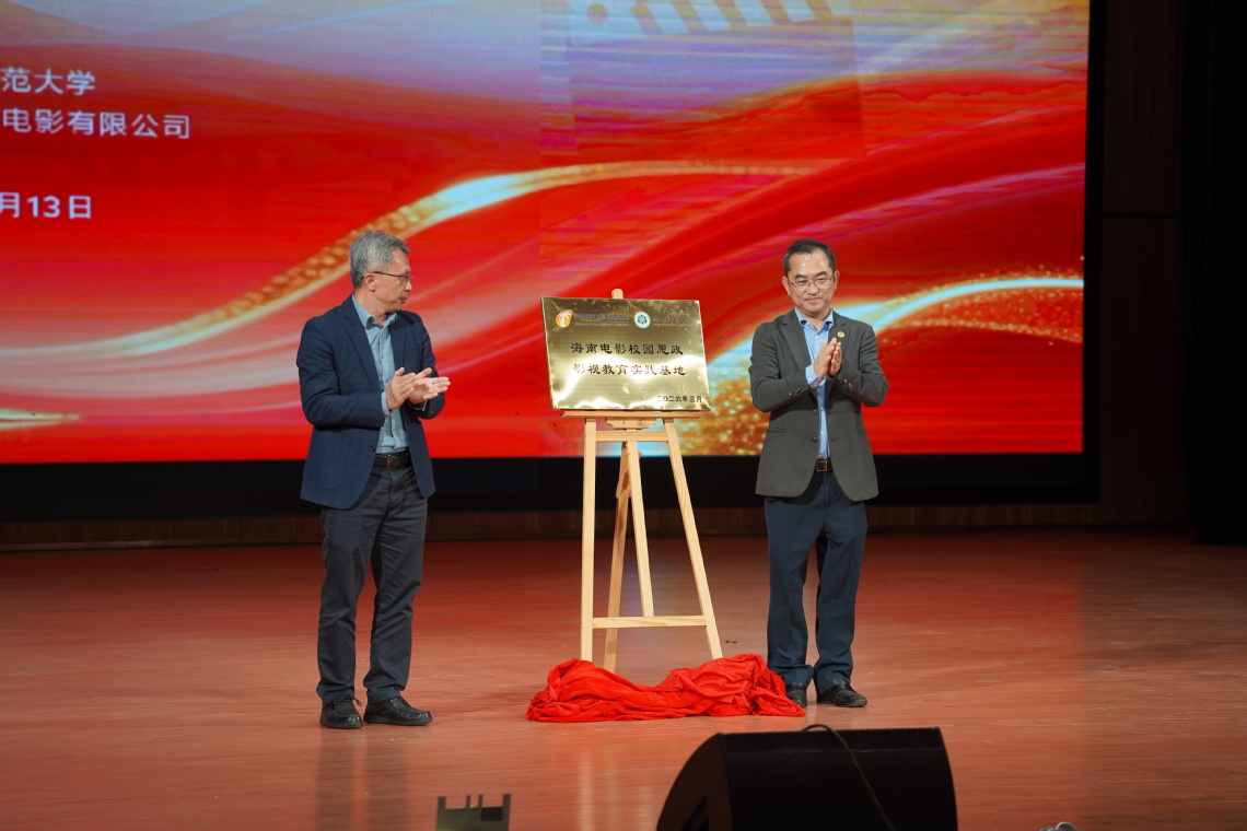 3月13日下午,我校与海南省电影有限公司共建的“海南电影校园思政影视教育实践基地”揭牌仪式暨“光影筑梦,绽放芳华”电影展映活动,在桂林洋校区大学生活动中心演艺厅举行。海南广播电视总台党组成员、总工程师孙照学一行、学校党委副书记符刘才、校团委负责人、新闻传播与影视学院负责人,学校与电影公司相关工作人员及师生代表660余人参加活动。活动由校团委负责人主持。