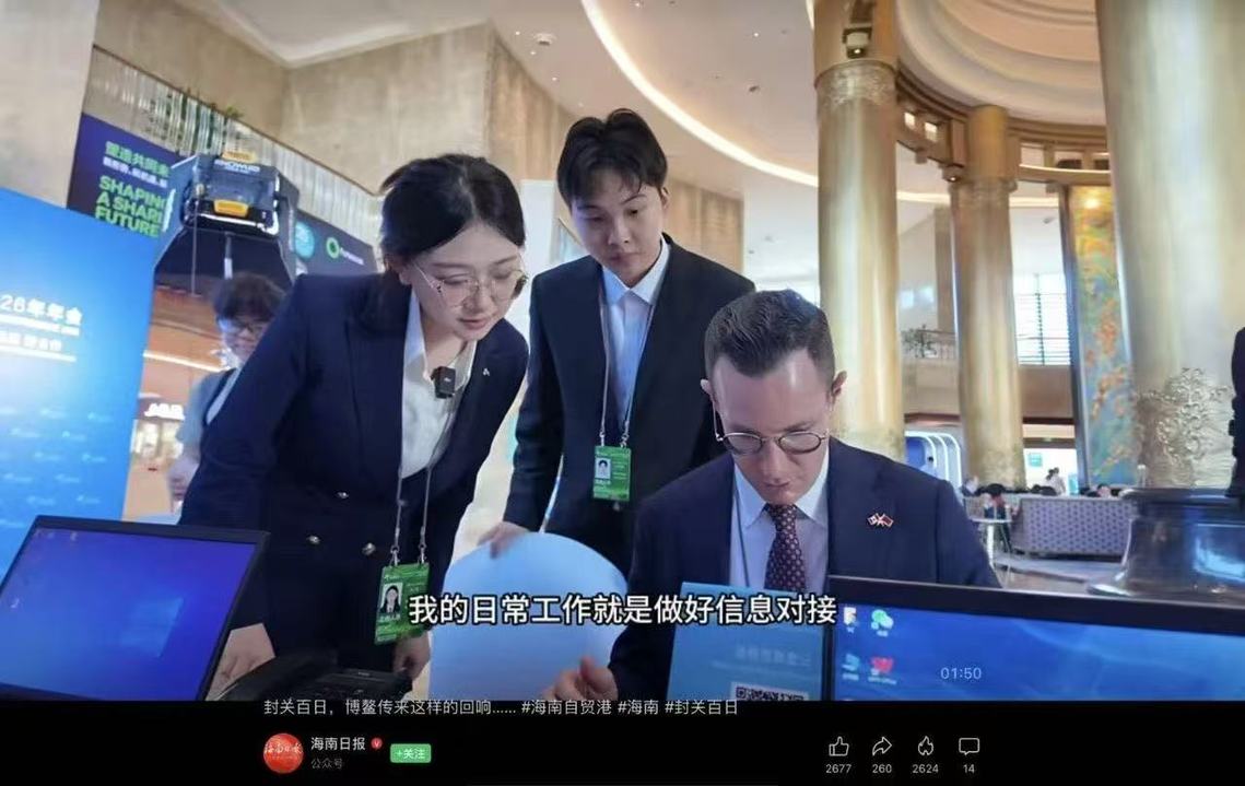今年博鳌论坛年会以“塑造共同未来:新形势、新机遇、新合作”为主题,现场氛围更加国际化、自信。她谈到在陪同一位外宾逛免税店时,对方用流利的中文与她聊起海南自贸港封关运作政策,言语间满是对这片热土的期待。 “那一刻我突然觉得,我们不是在完成一次服务,而是在见证和参与一个时代的落地。” 她说,这种交流,让她真切感受到年会主题就发生在每一次真诚对话与跨文化理解之中。